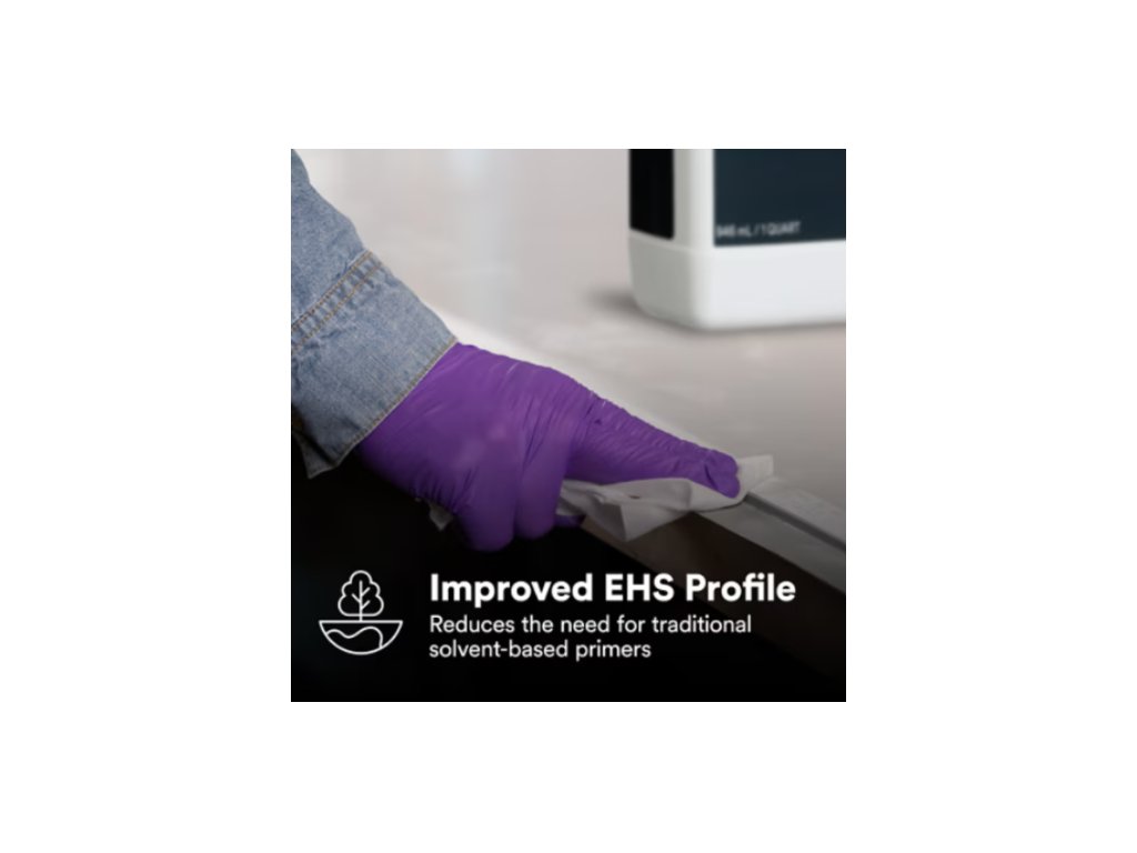 - 3M™ VHB™ Tape Water-Based Promoter UV ponúka udržateľné riešenie tým, že znižuje potrebu tradičných základných náterov na báze rozpúšťadiel. Pravdepodobne vám pomôže splniť vaše ciele udržateľnosti a zlepšiť váš environmentálny a bezpečnostný profil.