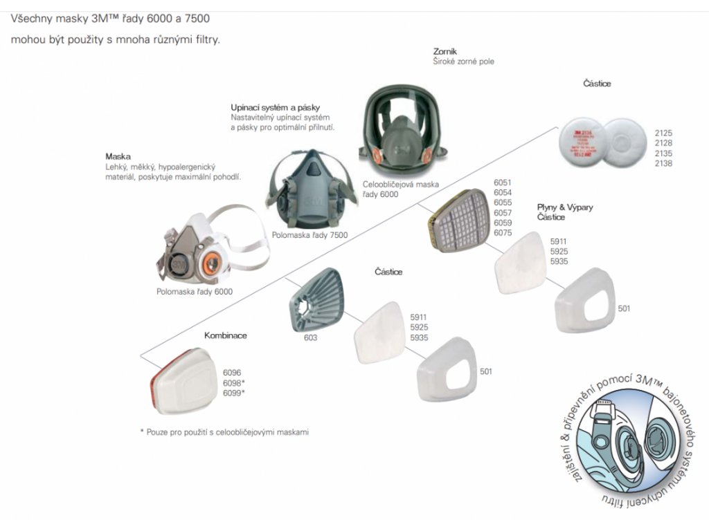 - V kombinácii s držiakom filtra 501 umožňuje samostatné pripevnenie filtrov série 5000 k maskám 3M.