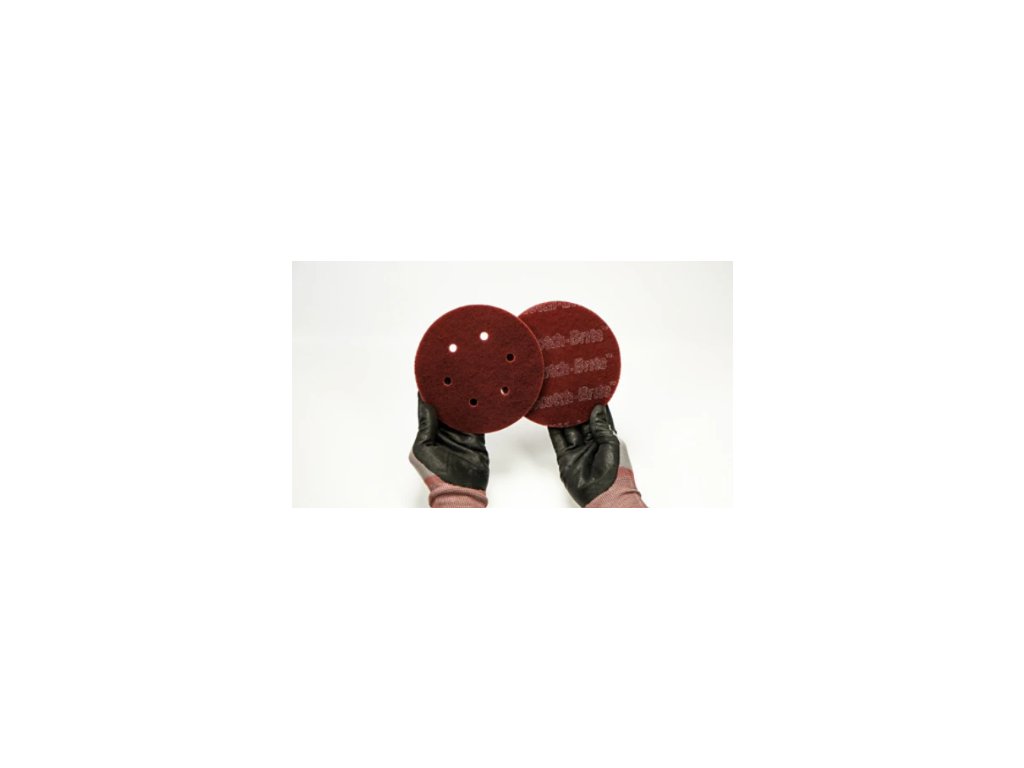 Konzistentné výsledky za kratší čas. Kotúč 7447 PRO je určený na skrátenie času prípravy povrchu, či už pred lakovaním v automobilovom priemysle, alebo pri brúsení nábytku či skríň. Vďaka našej technológii povrchovej úpravy vlákien dokáže kotúč Scotch Brite™ Hookit™ 7447 PRO rýchlejšie rezať a vytvárať rovnomernejšie škrabance, čím skracuje čas potrebný na brúsenie, prípravu alebo konečnú úpravu dielov. Tesne odstupňované brúsne častice poskytujú konzistentné a rovnomerné výsledky počas celej životnosti kotúča. Vďaka veľmi jemným brúsnym časticiam oxidu hlinitého tento kotúč reže rýchlo a zanecháva čistý, hladký povrch. Tento univerzálny kotúč nahrádza oceľovú vlnu. Tento kotúč je vhodný na použitie na širokú škálu materiálov, ako je drevo, kov, plasty, keramika, porcelán, sklo, guma alebo kompozity, a jeho výkon je porovnateľný s oceľovou vlnou triedy 1. Na rozdiel od oceľovej vlny však kotúč Scotch Brite Hookit 7447 PRO po použití nehrdzavie a nevytvára jemné kovové triesky. Používajte ho na čistenie, dokončovanie, vyhladzovanie a odstraňovanie otrepov alebo na brúsenie pred nanesením farby a základných náterov. Dokáže vyčistiť aj čalúnenie a chróm. Tento všestranný výrobok je účinný v mokrom aj suchom prostredí a možno ho opláchnuť a znovu použiť. Výhody Scotch Brite PRO. Scotch Brite PRO je jedinečný výrobok na ošetrenie povrchu s abrazívnymi časticami vloženými do netkaných nylonových vlákien. Vďaka prelomovej technológii úpravy vlákien sú brúsne výrobky Scotch Brite™ PRO schopné rýchlejšie rezať a vytvárať rovnomernejšie škrabance ako konkurenčné netkané brúsne výrobky, čo znižuje čas a úsilie potrebné na povrchovú úpravu dielov. Kombinácia brúsnych častíc s vláknami vytvára brúsny systém, ktorý poskytuje konzistentné výsledky počas celej životnosti výrobku. Otvorená sieťovina je odolná voči zaťaženiu a udržiava abrazívne minerály pri vysokom výkone tým, že obmedzuje zanášanie nylonových vlákien. Rýchle rezanie a trvanlivosť oxidu hlinitého. Oxid hlinitý je obľúbený minerál medzi priemyselnými profesionálmi vďaka svojej rýchlosti rezania a trvanlivosti. Je to tvrdé, odolné brúsivo, ktoré sa používaním samo láme a odhaľuje nové rezné hrany, zatiaľ čo tradičné brúsivá, ako napríklad granát, sa používaním rýchlo opotrebúvajú. Vďaka svojej vysokej reznej schopnosti, tvrdosti, pevnosti a nízkej tepelnej retencii sa minerál oxid hlinitý široko používa pri brúsení, leštení a povrchovej úprave. Hliník je vhodný na širokú škálu podkladov v drevospracujúcom a kovospracujúcom priemysle vrátane železných zliatin. Pohodlie systému 3M Hookit. Podložka Hookit na valci 7447 PRO umožňuje jednoduché a priame pripevnenie valca k podložke 3M Hookit (predáva sa samostatne), čím sa eliminuje potreba medzipriestoru na konverziu medzi valcom z netkanej textílie a podložkou. Kotúče Hookit sa pohodlne a bezpečne pripevnia na podložku Hook and Loop (predáva sa samostatne) na excentrickej brúske a možno ich ľahko a čisto vybrať a opätovne použiť počas celej životnosti brúsiva. Vďaka priamemu upevneniu je používanie nášho obľúbeného kotúča 7447 PRO pohodlnejšie ako kedykoľvek predtým. Namiesto práce s ručnou podložkou alebo nutnosti používať medzivrstvu na pohon kotúča môžu operátori zvýšiť produktivitu a využiť kotúč na maximum jeho použitím na orbitálnej alebo excentrickej brúske 3M.