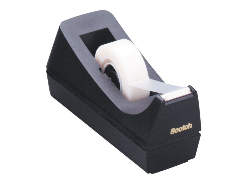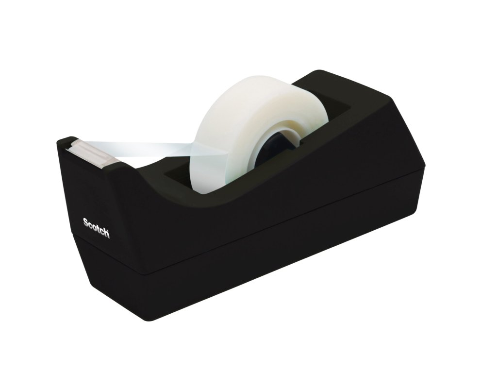 Zásobník Scotch C38, čierny, s ergonomickým dizajnom a závažím vo vnútri na jednoduché vyberanie pásky jednou rukou