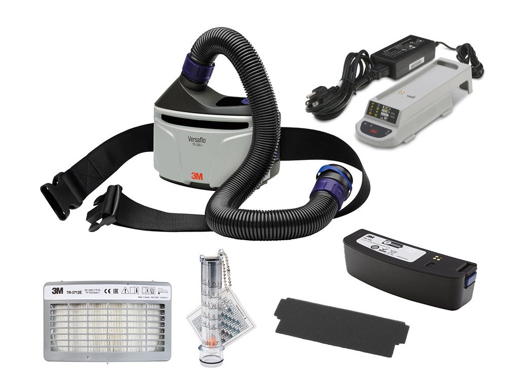 3M™ Versaflo™ TR-302 Filtračná jednotka pre aplikácie zahŕňajúce nebezpečenstvo prachu a hmly. Táto technológia sa vyznačuje vysokou ochranou, výkonom, funkčnosťou s moderným dizajnom a štýlovou ľahkou konštrukciou. Táto štartovacia súprava obsahuje ventilačnú filtračnú jednotku TR-302E, filter pevných častíc, predfilter, štandardný remeň, vysokokapacitnú batériu, nabíjačku pre jednu batériu, hadicu BT-30 a indikátor prietoku vzduchu (červená guľová trubica).